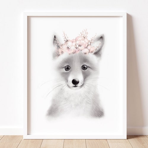 Fox Nursery Art Print Fox Blush Flower Crown Art Woodland Etsy